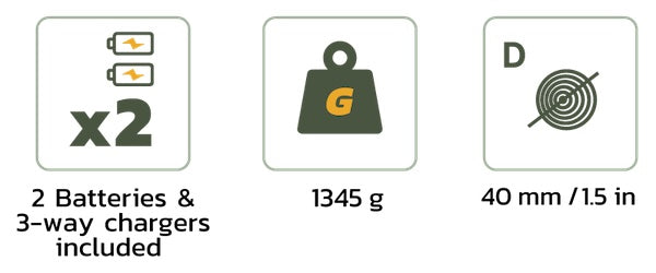 For all-day work, it comes with 2 batteries (21.6V 2.6Ah and 21.6V 4.5Ah) that can be charged simultaneously using the 3-way charger. Our pack includes essential maintenance tools, grease and pump, and an extension cable for flexibility. Need more reach? An optional extension pole is also available for high branches.